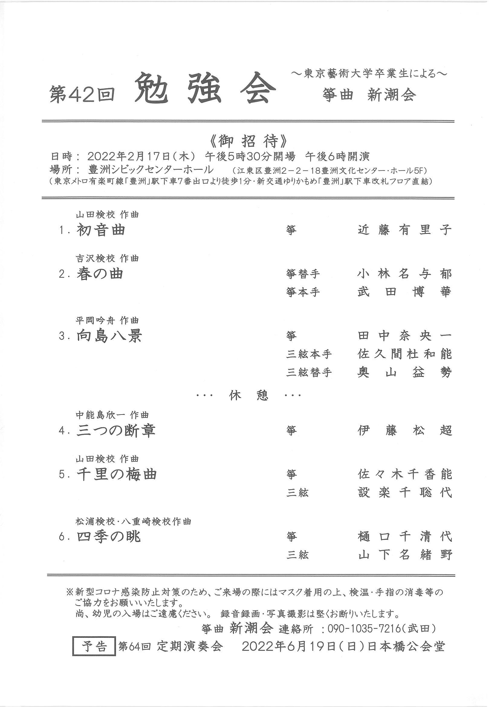 第42回勉強会 ~東京藝術大学卒業生による~ 箏曲新潮会