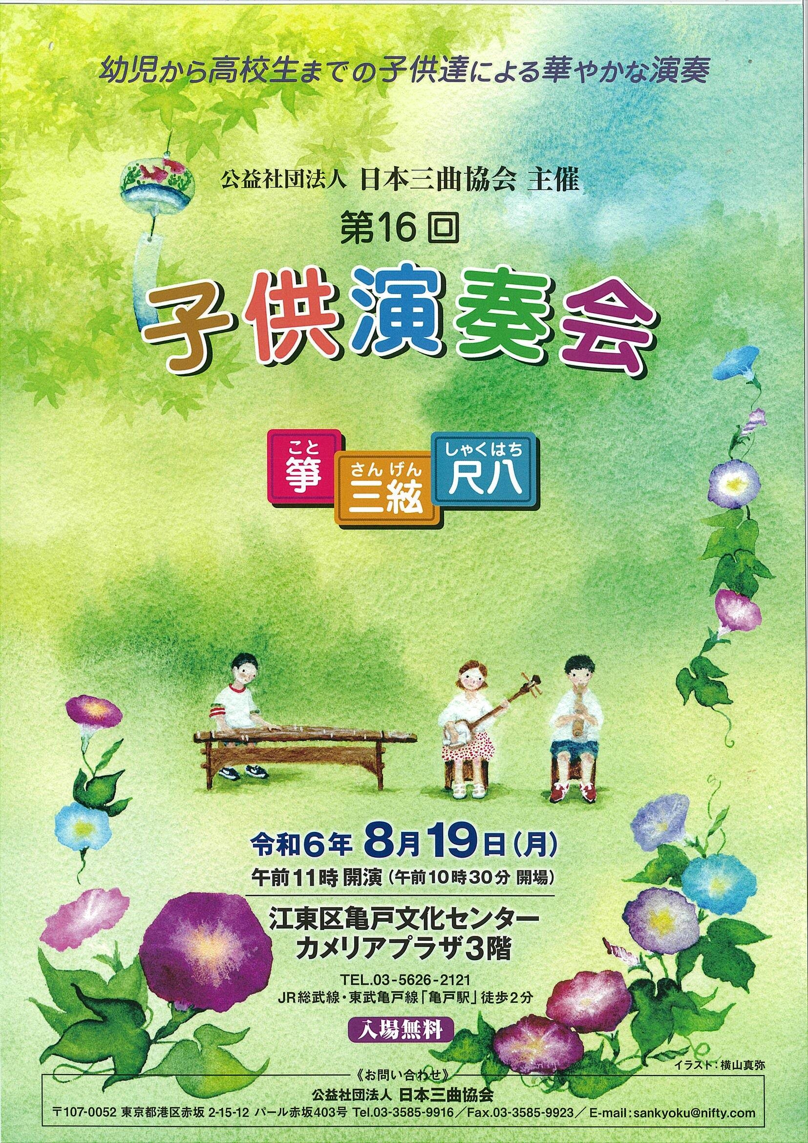 | お問い合わせ先 | 公益社団法人日本三曲協会 TEL:03-3585-9916 / FAX:03-3585-9923 MAIL:sankyoku@nifty.com |