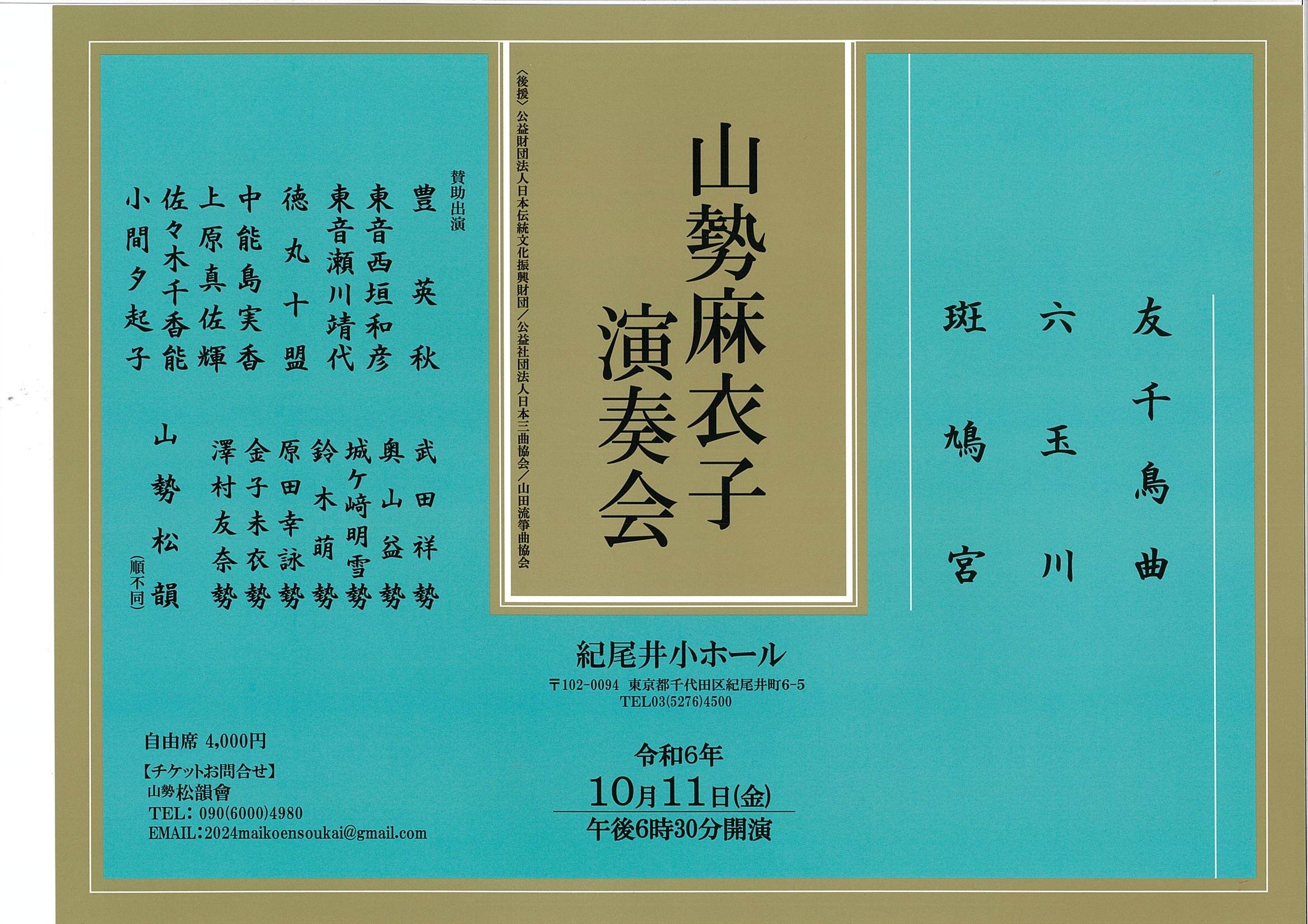 | 後援 | 公益社団法人 日本三曲協会 |