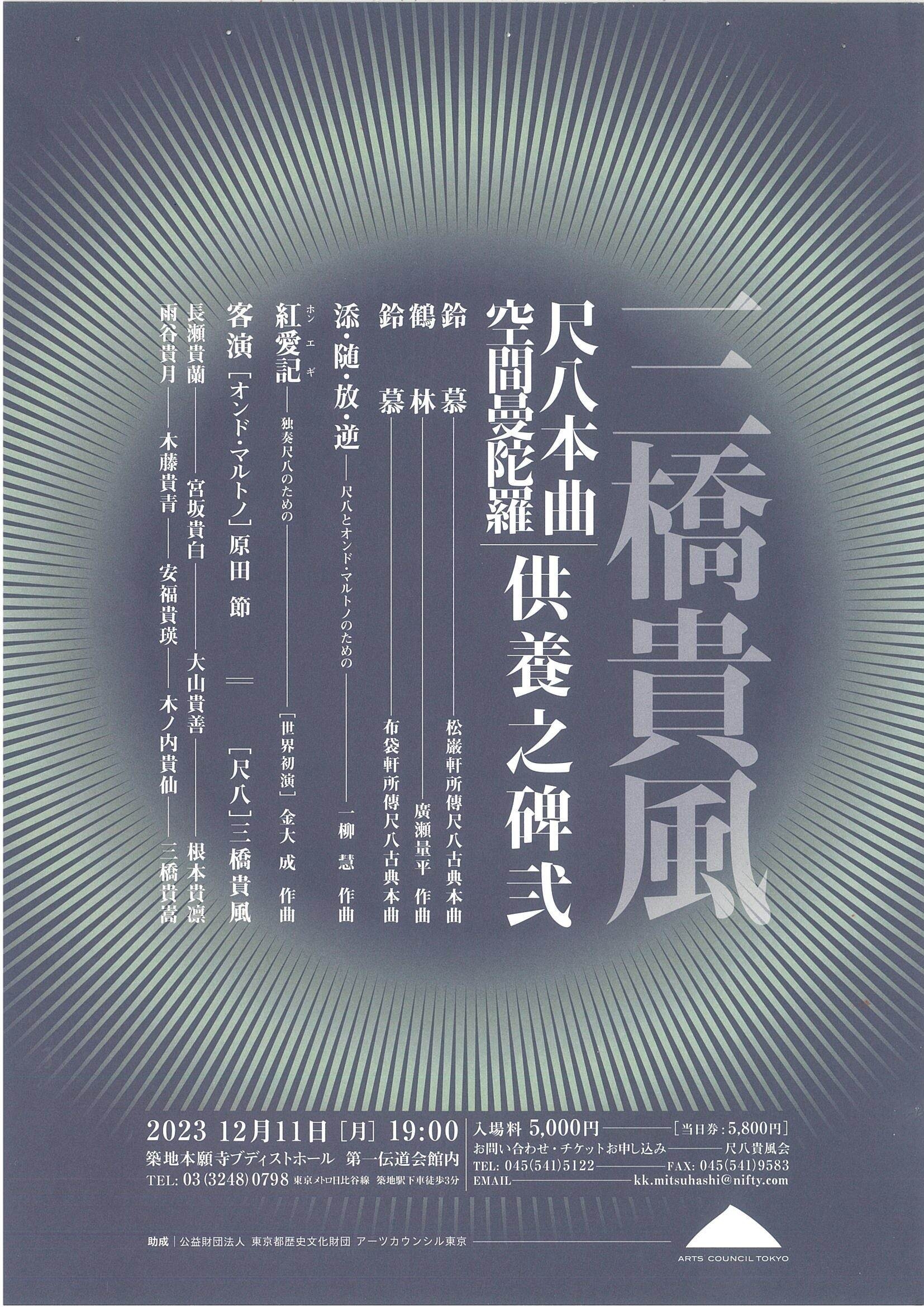 | 日時 | 令和 5 年 12 月 11 日 (月) 開演:19時 |