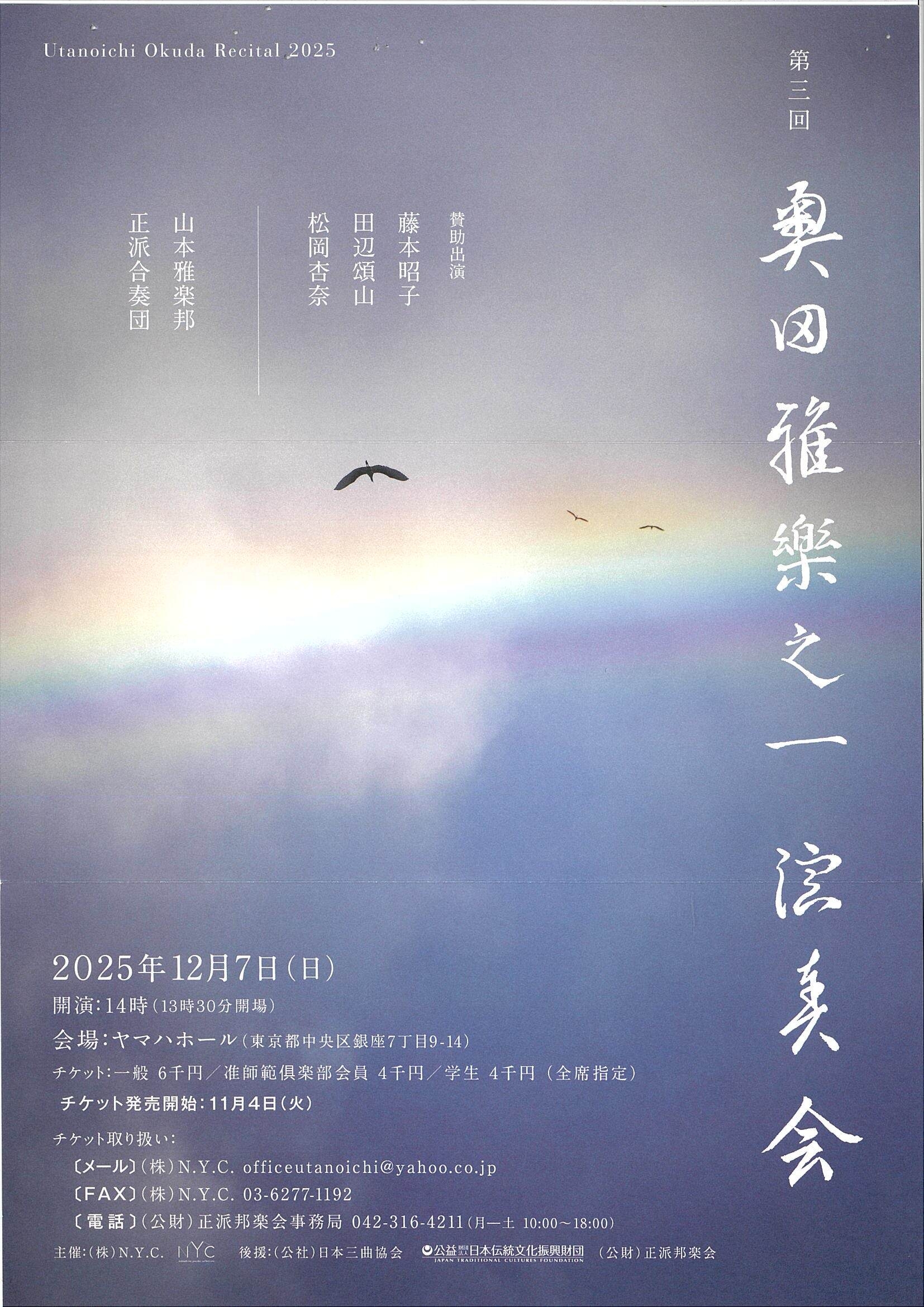 (公財)正派邦楽会事務局 [TEL]:042-316-4211(月ー土:10:00~18:00)