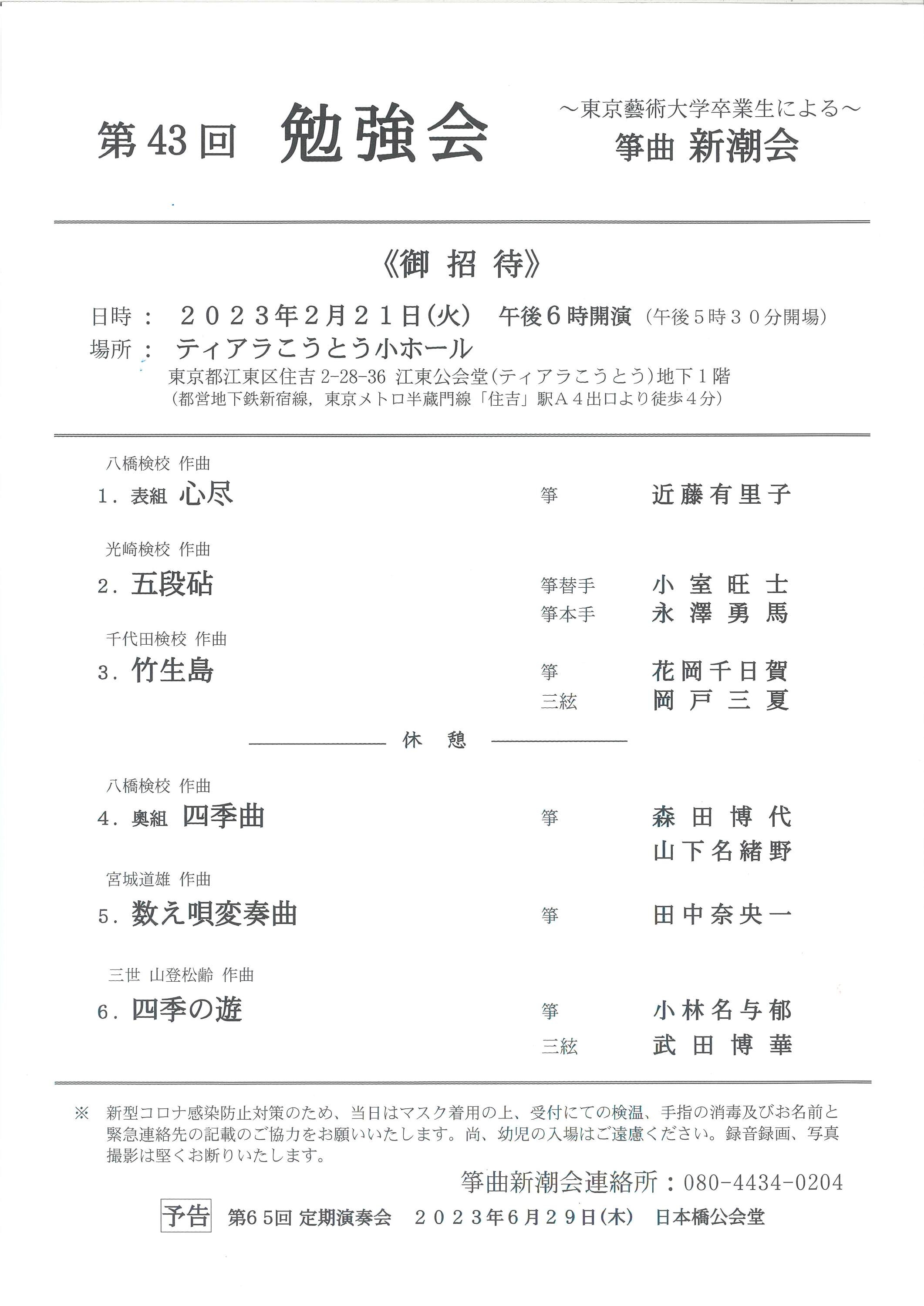 | お問い合わせ先 | 箏曲新潮会連絡所 : 080-4434-0204 |