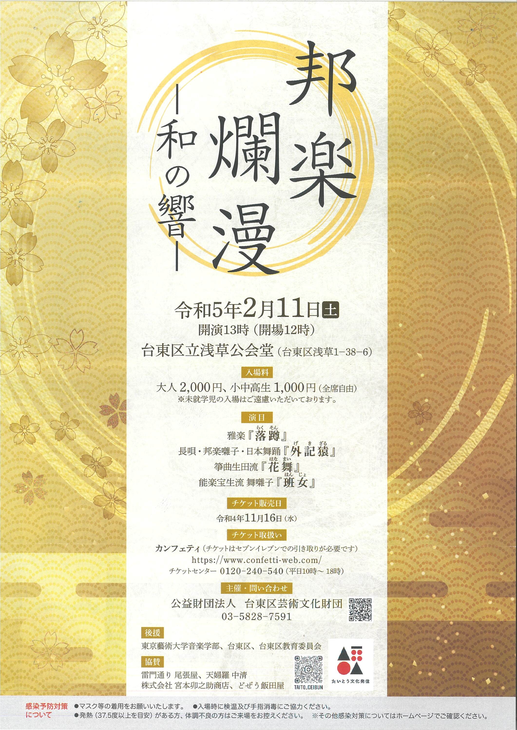 | お問い合わせ先 | 公益財団法人 台東区芸術文化財団 : 03-5828-7591 |