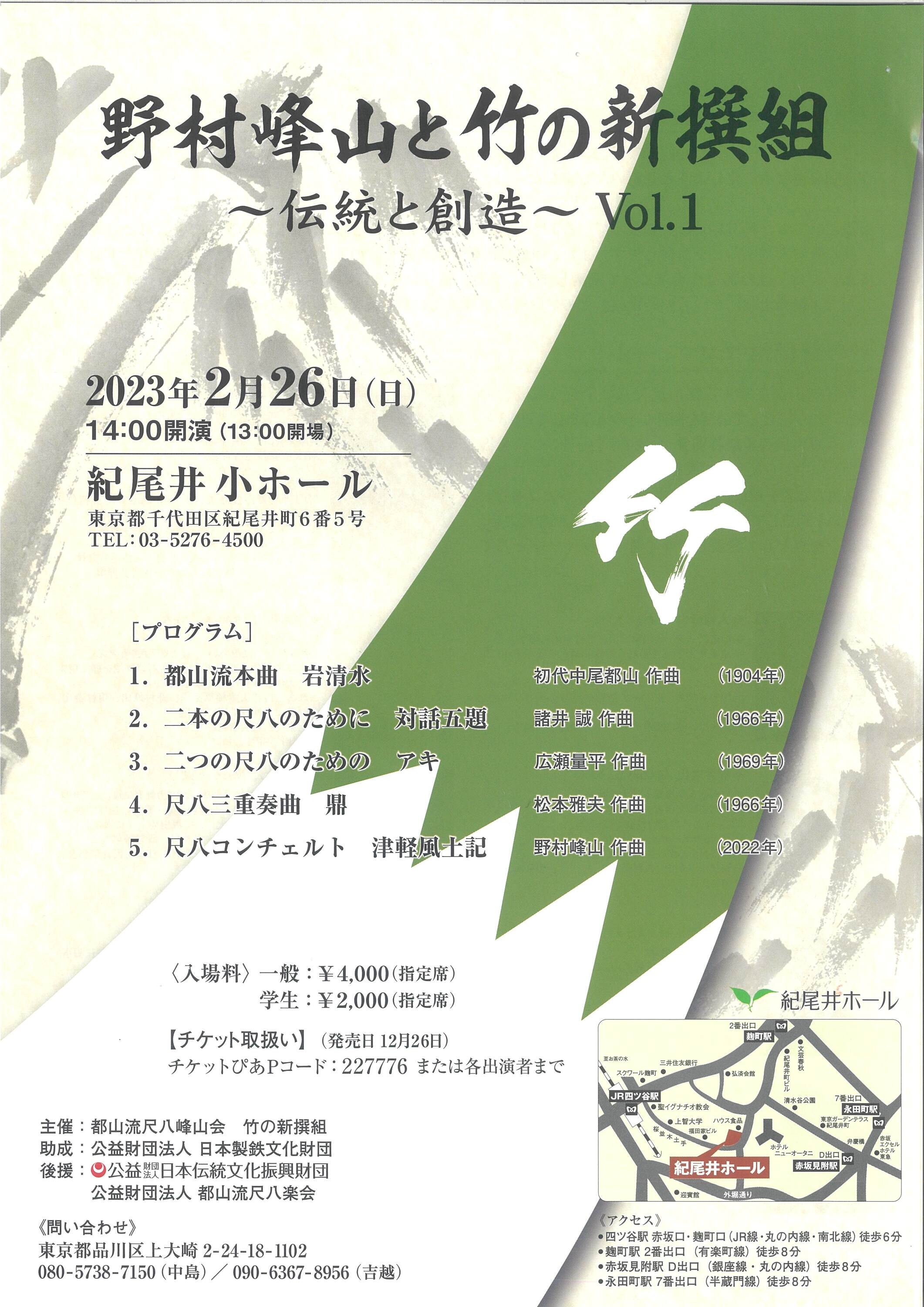 | 後援 | 公益財団法人 日本伝統文化振興財団 / 公益財団法人 都山流尺八学会 |