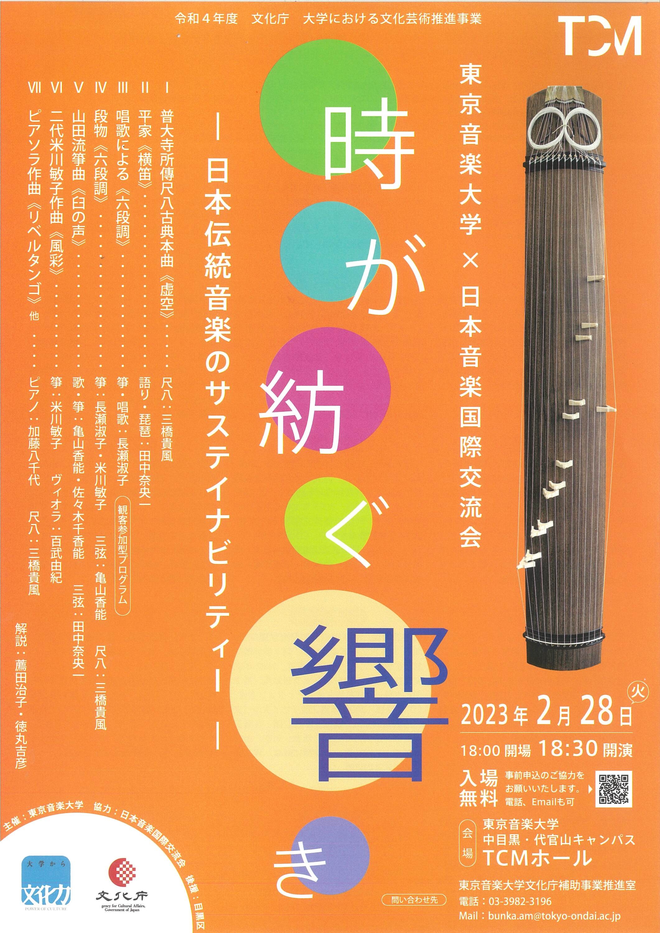 | お問い合わせ先 | 東京音楽大学文化庁補助事業推進室 TEL: 03-3982-3196 Mail:bunka.am@tokyo-ondai.ac.jp |