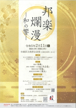 | 後援 | 東京邦楽器商工業協同組合 / 公益財団法人 日本伝統文化振興財団 / 邦楽ジャーナル |
