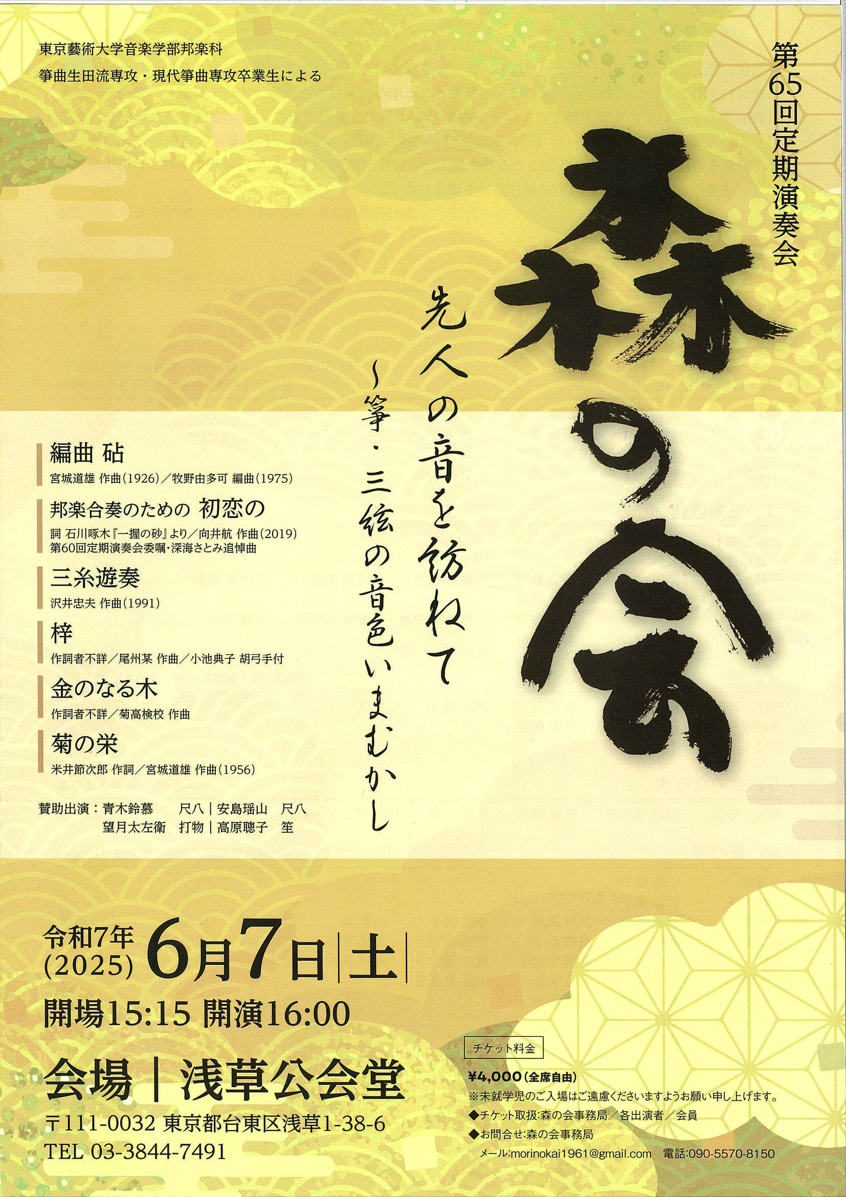 | 後援 | 公益社団法人日本三曲協会/生田流協会 |
