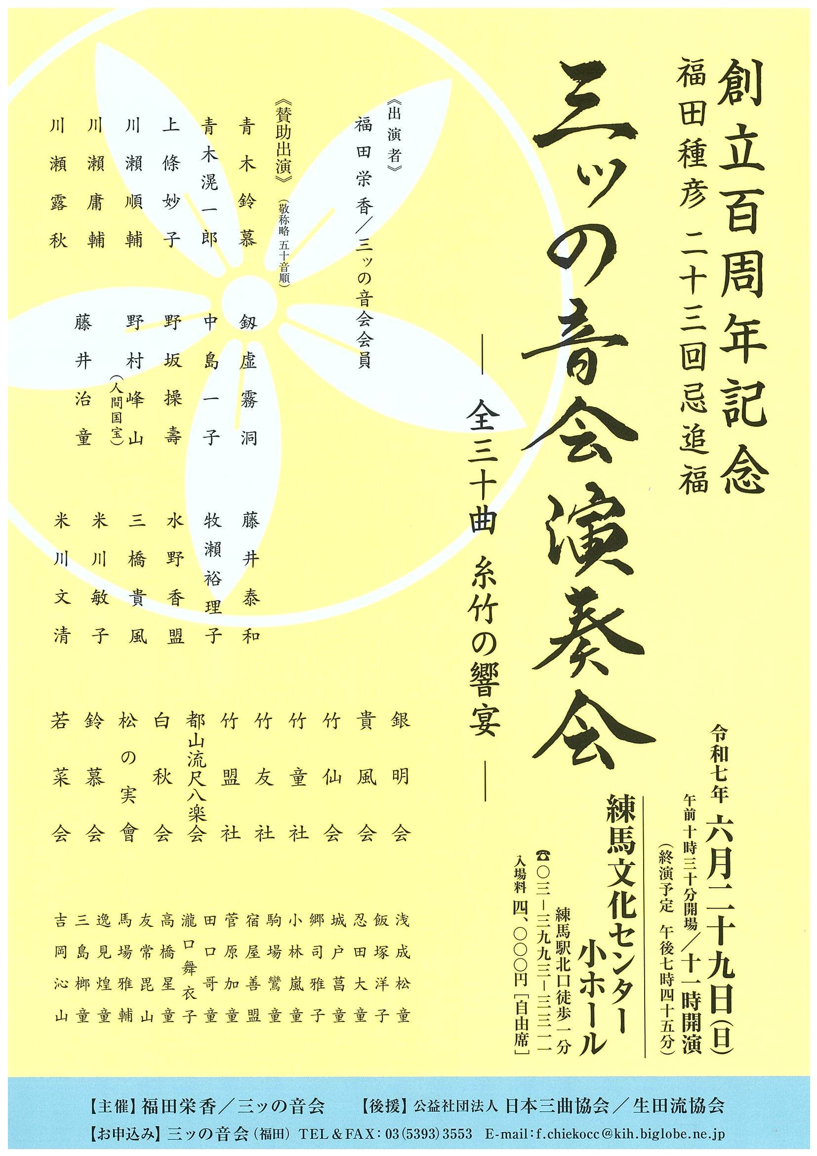三ツの音会創立百周年記念 福田種彦 二十三回忌追福 ー全30曲 糸竹の共演ー |