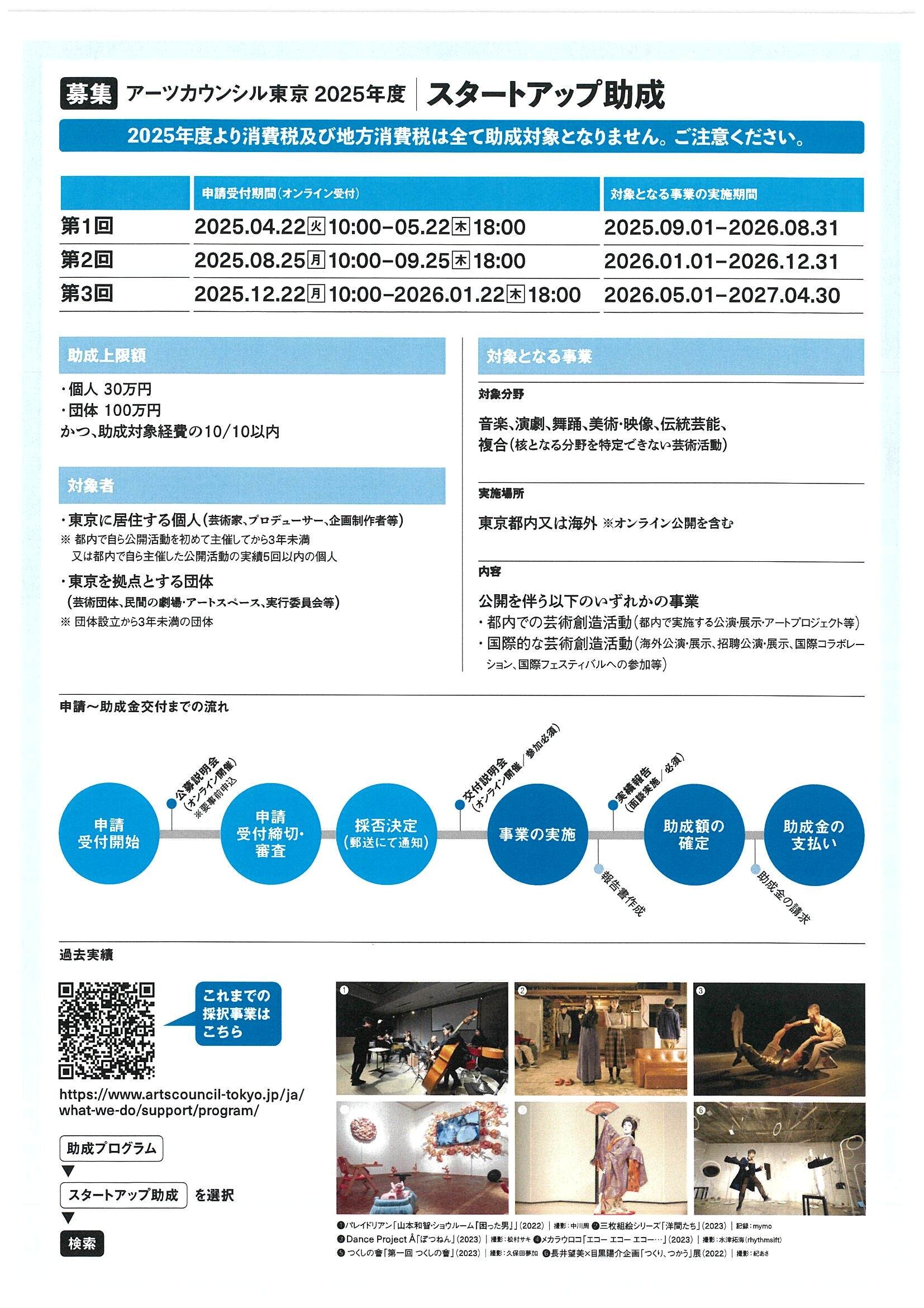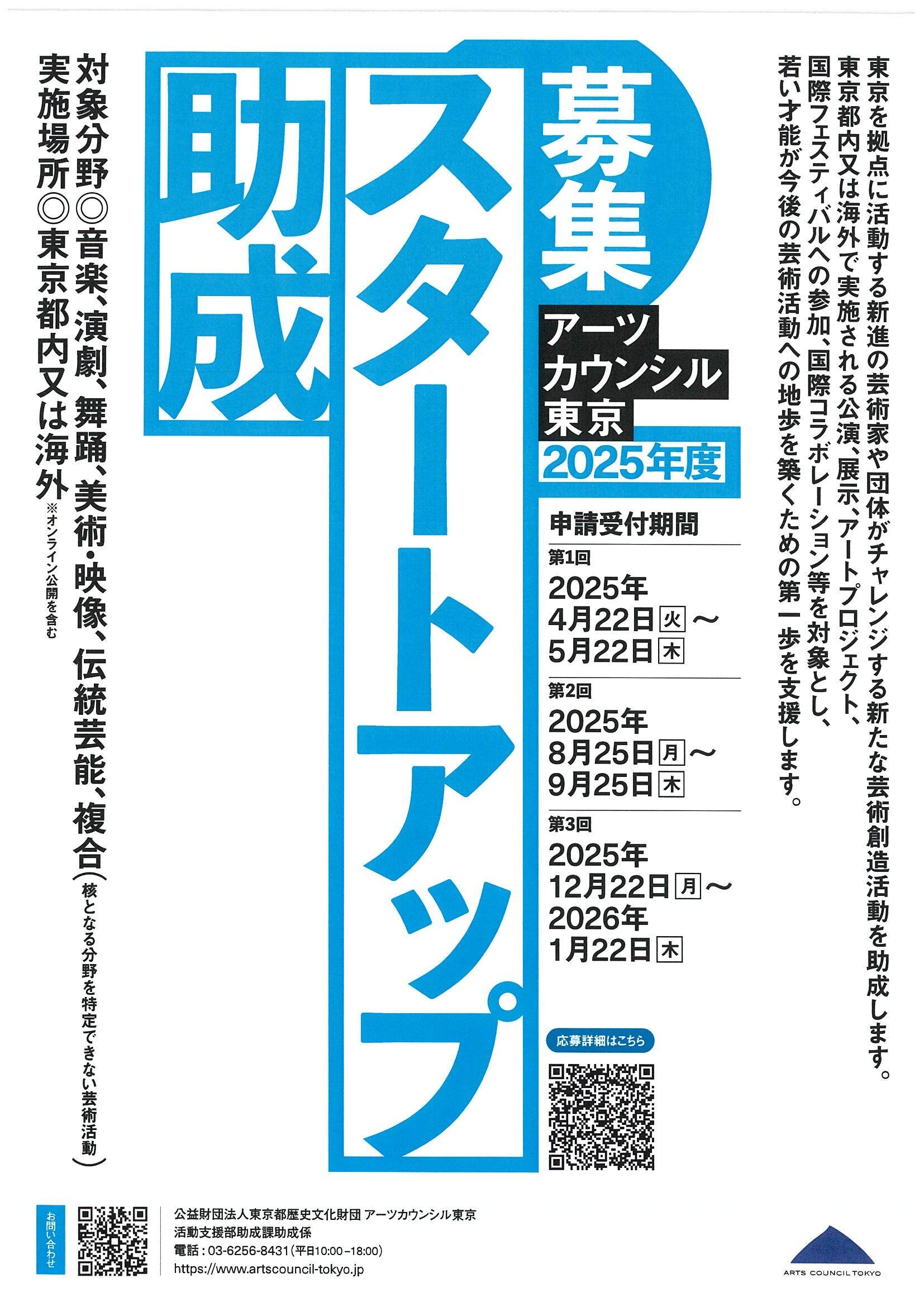公益財団法人東京都歴史文化財団 アーツカウンシル東京では、東京で新たな芸術創造活動をスタートする芸術家や団体を支援するため「スタートアップ助成」を行っております。