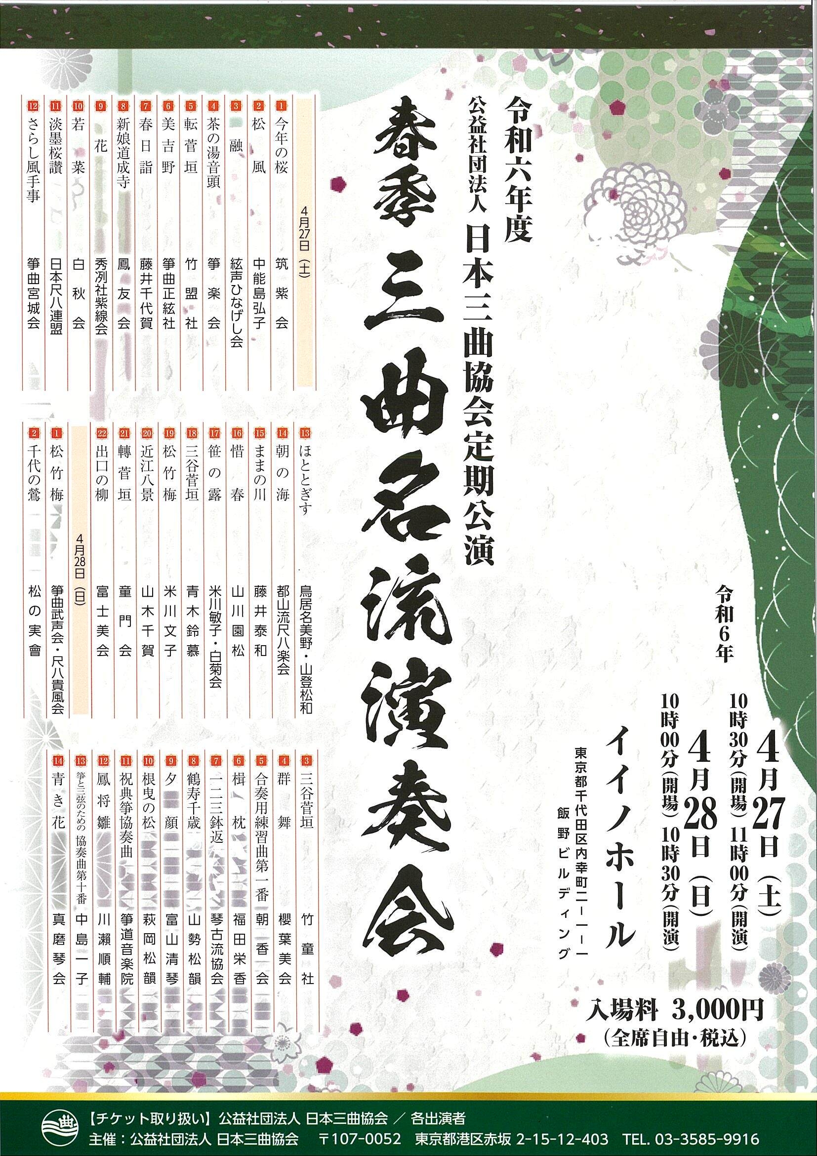 令和6年度 三曲実技講習会を下記のように開催いたします。